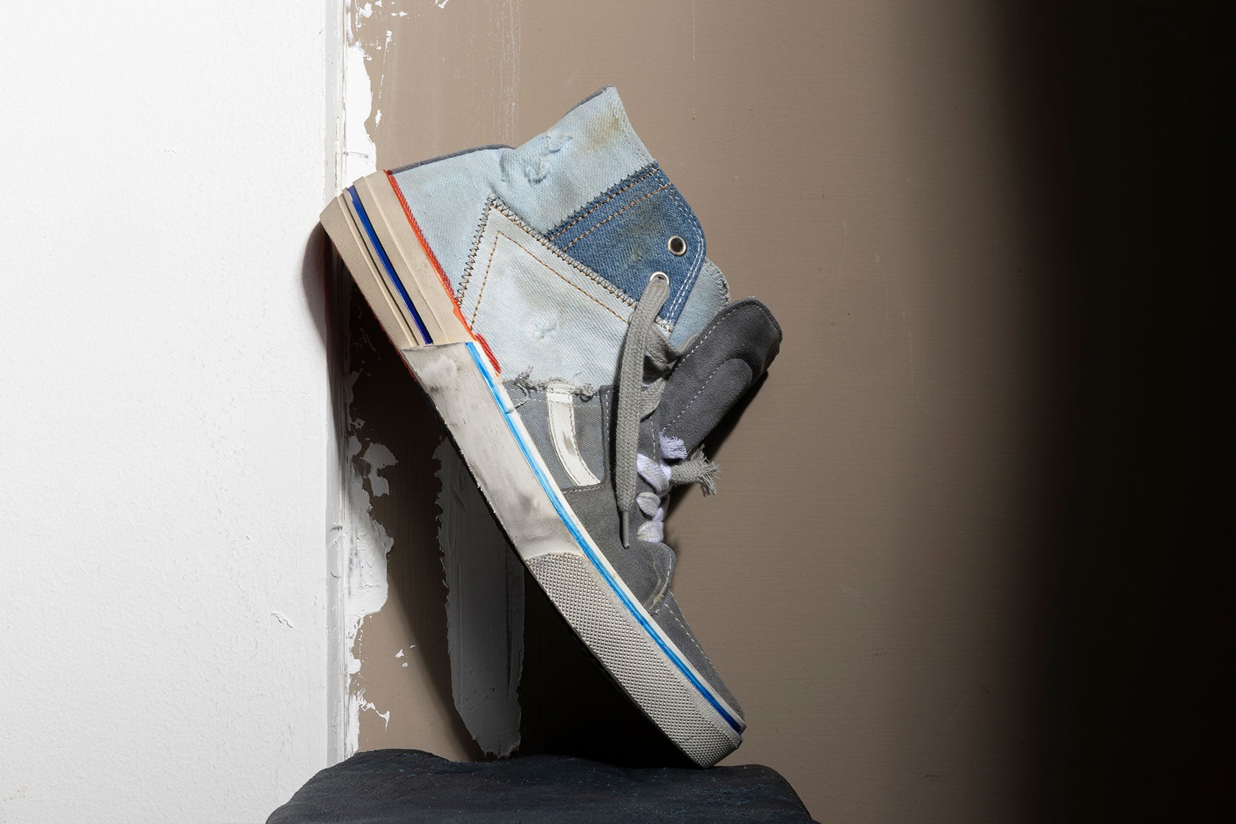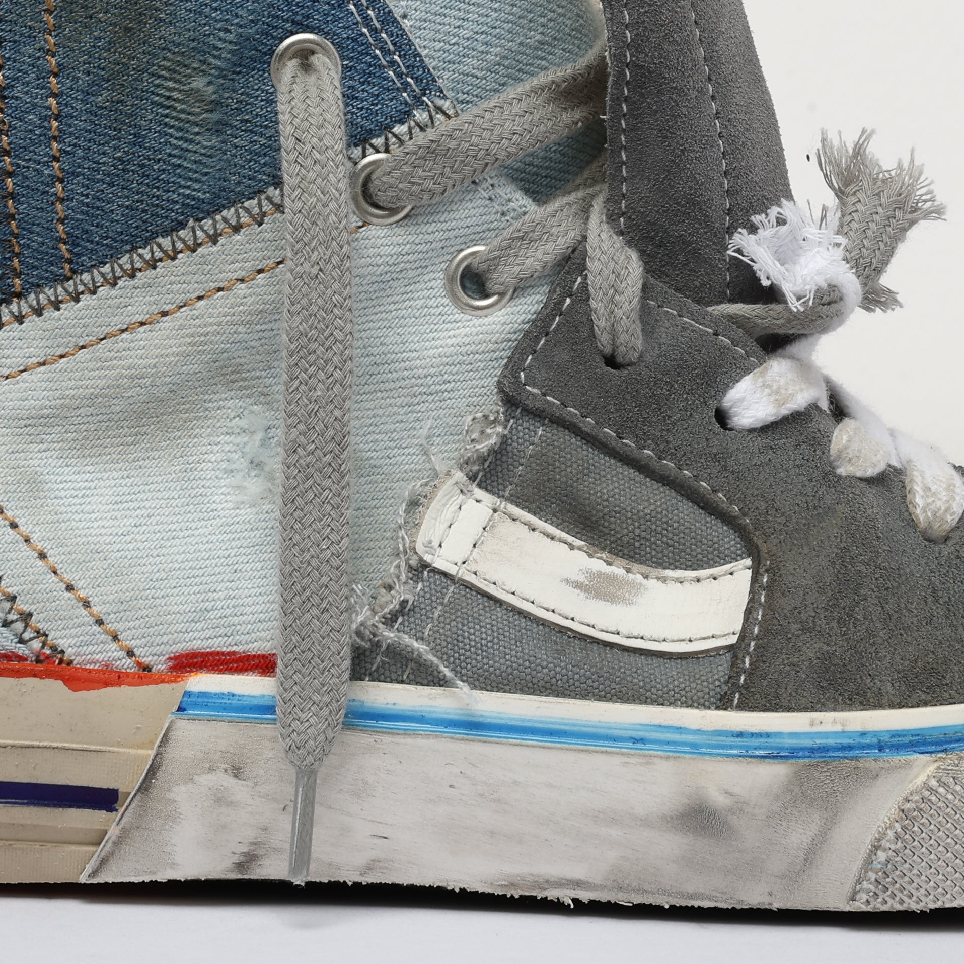 The CS002GD CALYSTAR infuses Chuck 70 design with sk8, resulting in a unique and stylish shoe. Crafted with a combination of denim, suede, and leather, these shoes elevate any look. Complete with bicolour laces, they provide comfort and versatility.